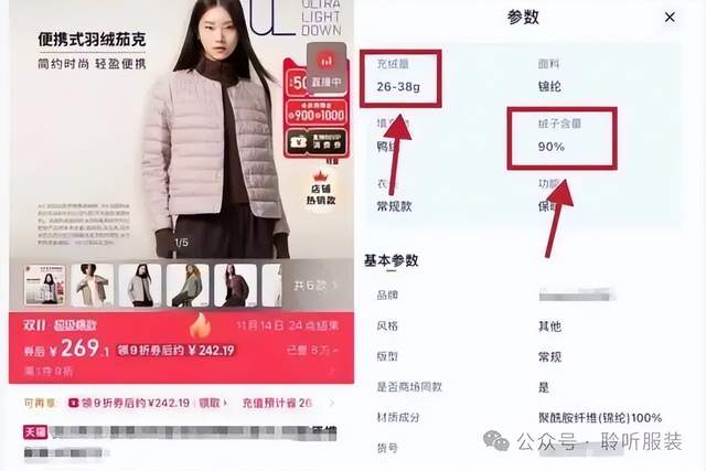 看清绒子含量、充绒量等核心指标